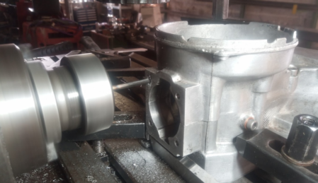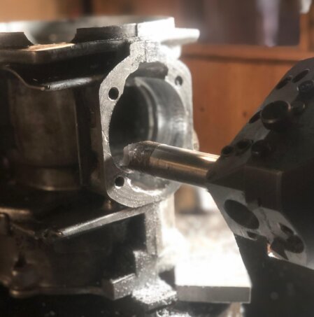 Aufspindeln des Gehäuses für 80ccm - Rennzylinder.
