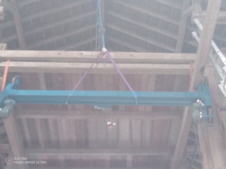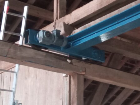 Auslegung, Konstruktion, Fertigung und Montage eines Hallenkranes für den Einbau in eine Scheune zum Verstauen von Maschinen und Material im Obergeschoss